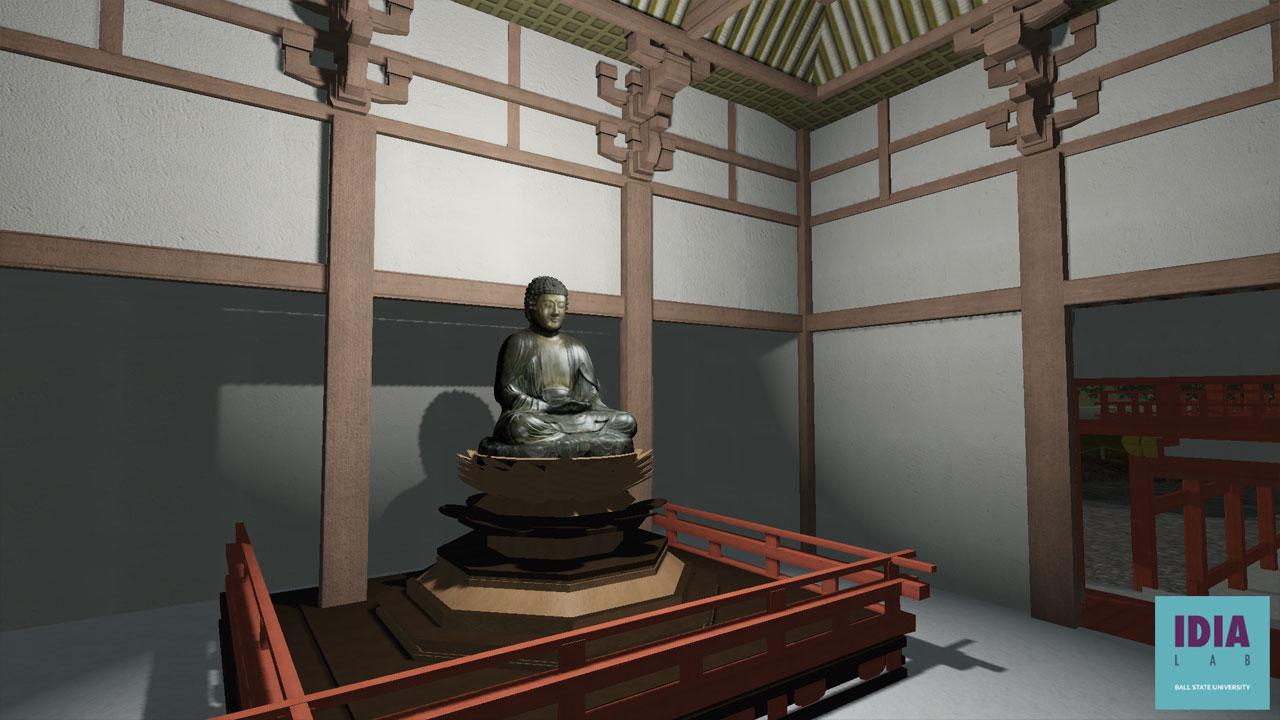 A historical recreation of the original context of the Amida Buddha statue located at the Ball State Museum of Art.
