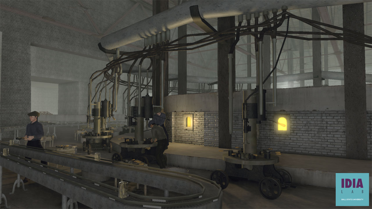 A historical recreation of the Ball Glass Factory in 1930s Muncie, IN.
