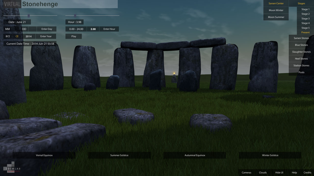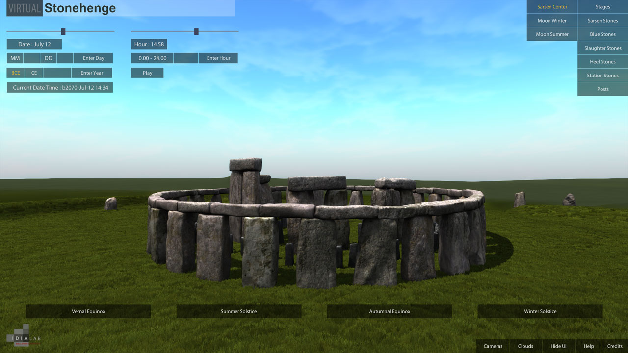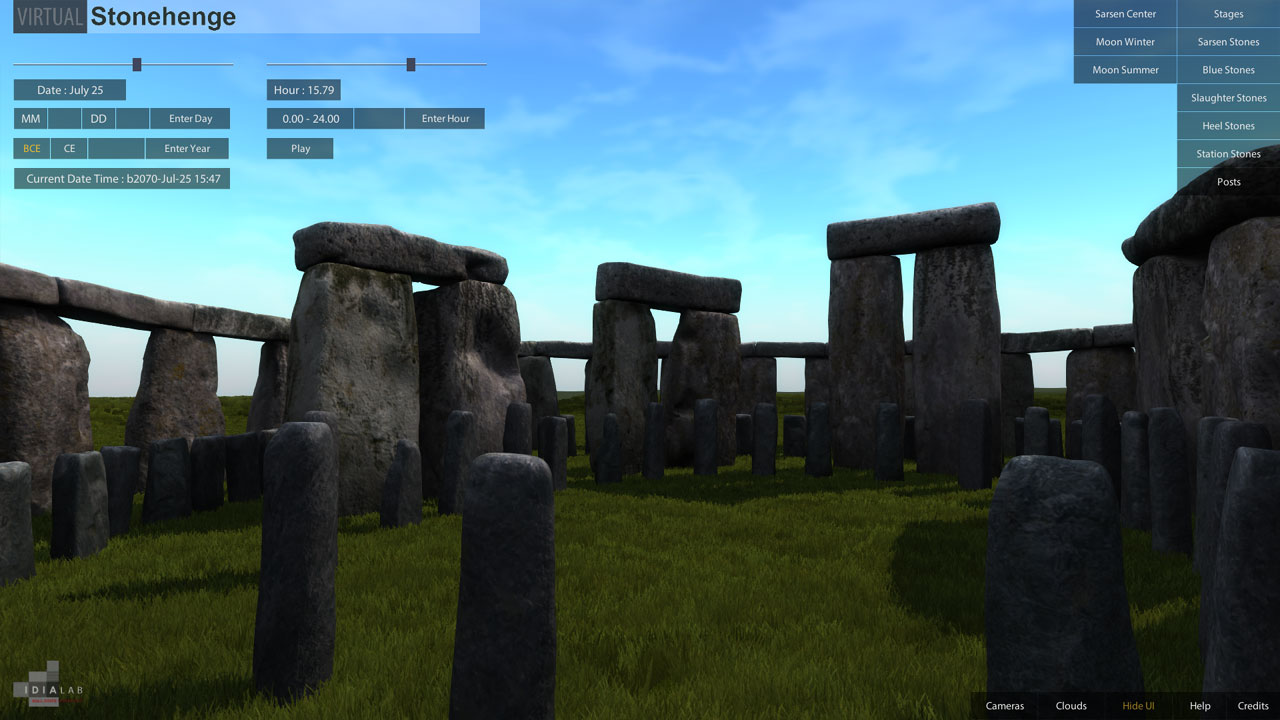 Developed as a multi-user virtual world with a solar tracking feature designed to test ancient solar alignments.