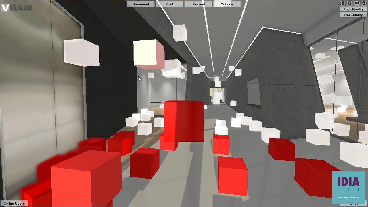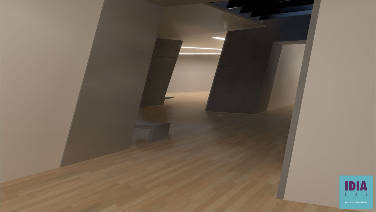A virtual simulation of the Broad Art Museum at Michigan State University with several virtual interactive art exhibits
